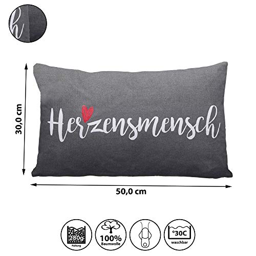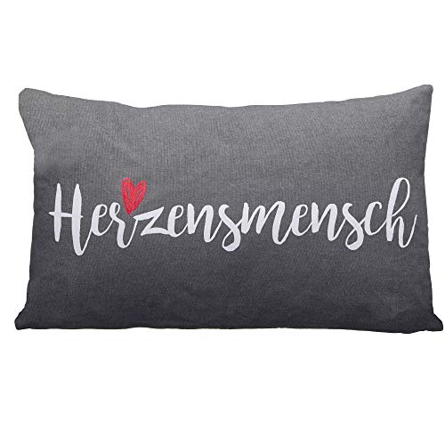 Lieferumfang:1 x Dekokissen „Herzensmensch“ (Lieferfarbe nach Auswahl) ohne Dekoration