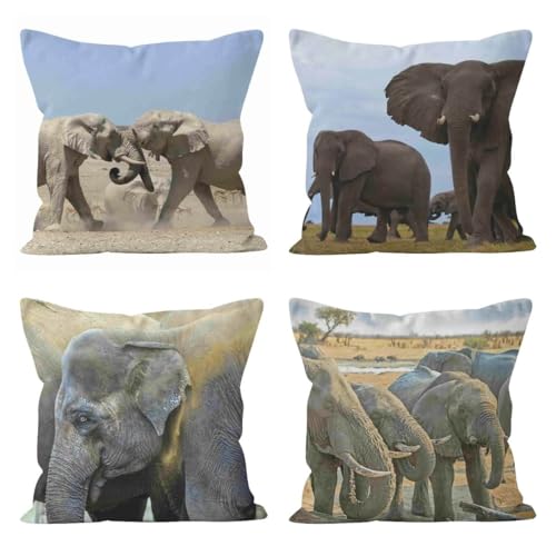 CEVAN Linen Kissenbezüge Uni Kissenbezug Jungs Elefant Kissenbezüge Couchkissen Kissenhülle Dekokissen Kissenbezüge Sofa Dekor 50x50cm,4Pcs