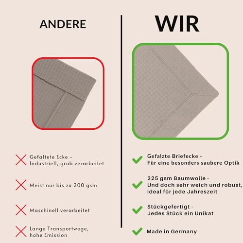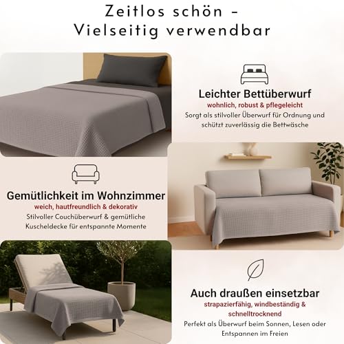 ✅ Hochwertige Waffelstruktur alle Baumwolle: Gefertigt alle 100 % Baumwolle mit 225 g/m² – angenehm weich und natürlich im Griff. Die zeitlose Waffelstruktur sorgt für eine stilvolle Optik auf Sofa, Sessel oder Bett.