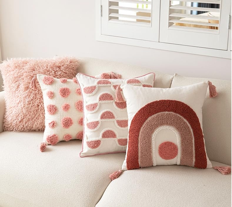 👑【PERFEKTE GRÖSSE】Measures 45x45cm , Das Paket enthält NUR 2 Kissenbezüge. No fillers,The 3D-Effekt mit dem Tufting-Technik macht diese kopfkissenbezug boho so unverwechselbar.(Aufgrund des manuellen Schneidens und Nähens bitte eine Aberration von 1-2 cm zulassen.)