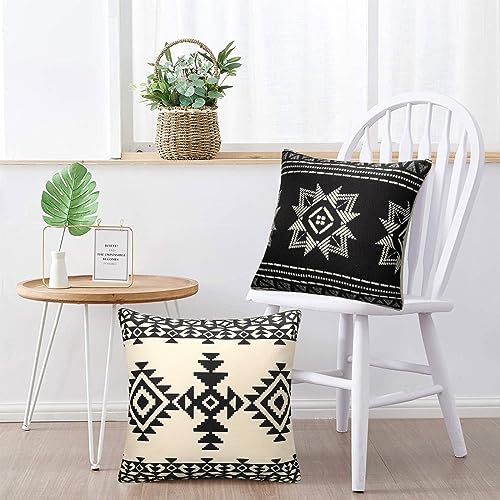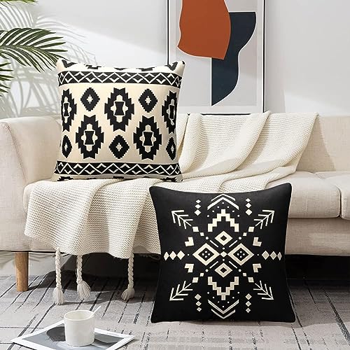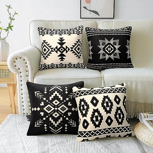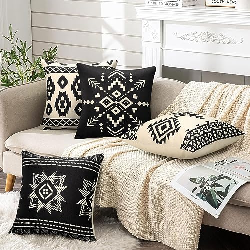 Dieses Set mit 4 ethnischen Stammes-Kissenbezügen, Retro-ethnischen geometrischen Kissenbezügen, quadratischen dekorativen Kissenbezügen für Sofa, Wohnzimmer und Schlafzimmer verleiht Ihrer Inneneinrichtung eine warme Atmosphäre.