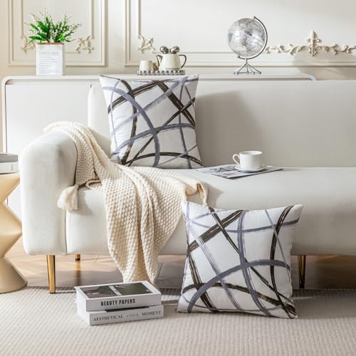 Cheekywares Outdoor Kissenbezug Deko Sofakissen 45×45 Braun und Grau Geometrische Linien Modern Luxuriöse Samt Kissenbezüge Couchkissen Dekokissen Kissenhülle Wohnzimmer Bett Draußen Balkon 2er Set