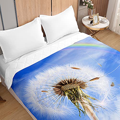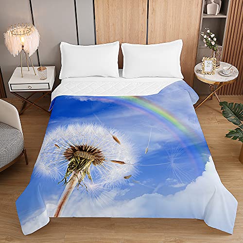 Chickw1 Tagesdecken Bettüberwurf, 3D Löwenzahn Drucken Sommer Tagesdecke mit Prägemuster Wohndecke aus Mikrofaser Bettdecke für Einzelbett Doppelbett oder Kinder (Regenbogen Löwenzahn,100x150cm)