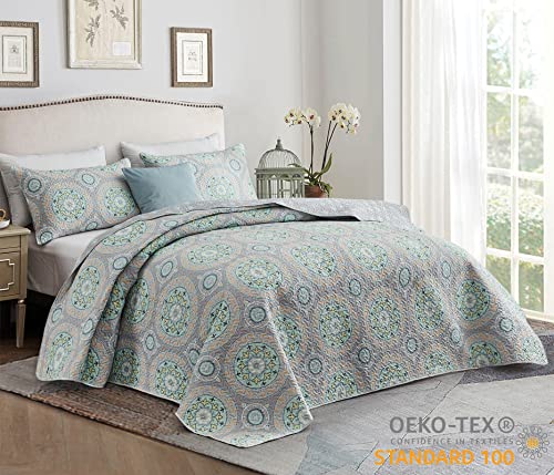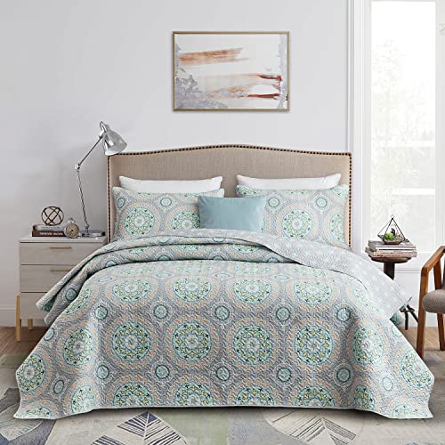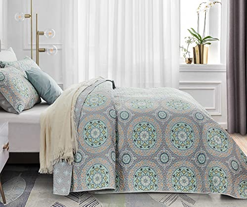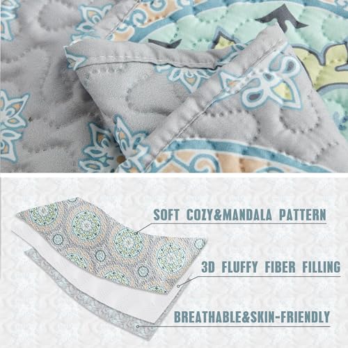 CHIXIN Tagesdecke 170×210 cm Bettüberwurf Steppdecke Boho Blumenmusters Bettdecke Stepp Decke Doppelbett unterfttert und Gesteppt (Kissenbezug Nicht Enthalten)