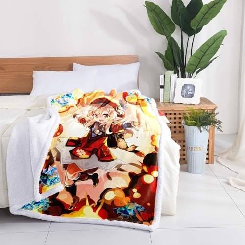 CHTLIFQ Genshin Impact Klee 3D Bettwäsche, Fleecedecke, weich, für Bett, Couch, Wohnzimmer, Sofa, Stuhl, Ganzjahres Überwurf, Decken, Kinderbettwäsche, 31,5 x 47,3 Zoll Sherpa (80 x 120 cm)
