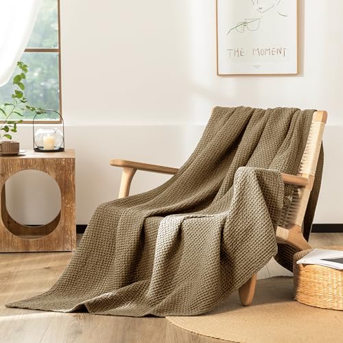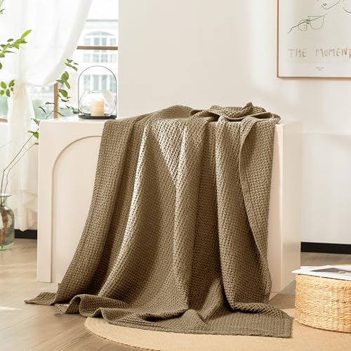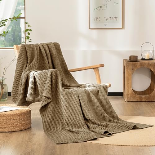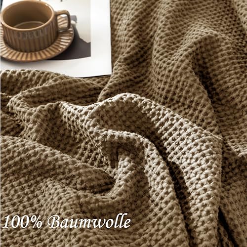 CHUFFED 100% Baumwolle Decke 220 x 240 cm, Weiche und Atmungsaktive Tagesdecke, Waffelmuster Leichte Decke als Sofadecke Couchdecke, Weich Kuschelige Wohndecke Wohnzimmer, Sofa Couch Braun