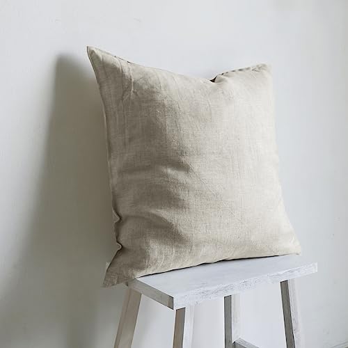 CHUFFED Kissenbezug 80×80 (Set mit 2) – Kissenbezüge aus Leinen Baumwolle- Für Kissen 80 x 80 cm Kissenhülle – Kissenbezug -Oeko-Tex-Zertifiziert, Beige, Umschlag Verschluss, Kein Reißverschluss