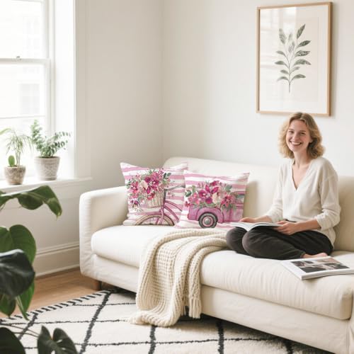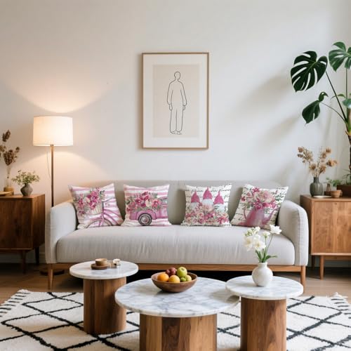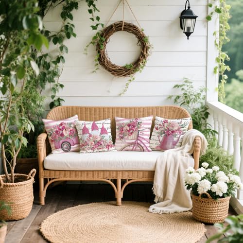 Cirzone Outdoor Kissen Dekorative Wasserfest 4 er Frühling Kissenbezug 45 x 45 cm Gartenkissen Wetterfest Atmungsaktiv GNOME Rosa LKW Kissenbezug Werden für Heim Sofak Garten
