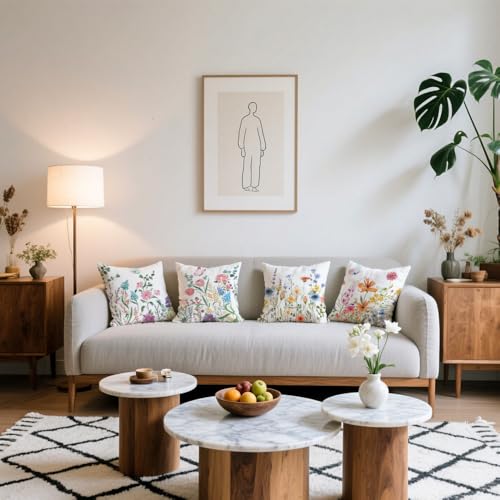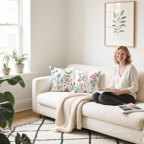 Cirzone Outdoor Kissen Dekorative Wasserfest 4 er Kissenbezug Frühling 45 x 45 cm Gartenkissen Wetterfest Bunte Blumen und Schmetterlinge Kissenbezug Werden für Heim Sofak Garten