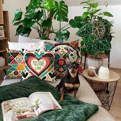 Cirzone Wasserdicht Kissenbezug 4er Set 45 x 45 cm Dekorative Outdoor Kissen Wasserfest Atmungsaktiv Liebe, Bunte Geometrie Kissenbezug Gartendeko für Draußen Sofakissen Garten Outdoor…