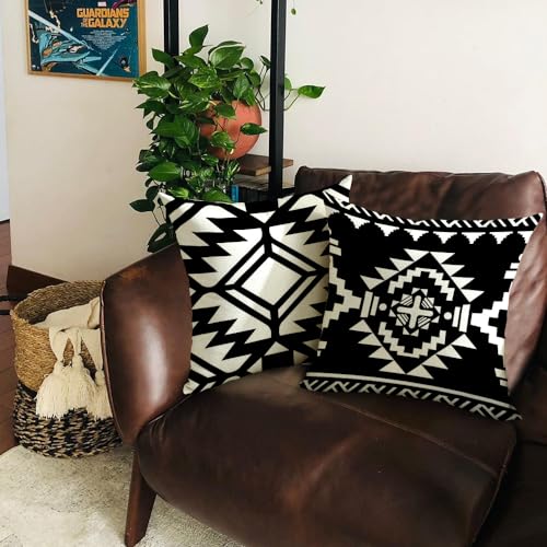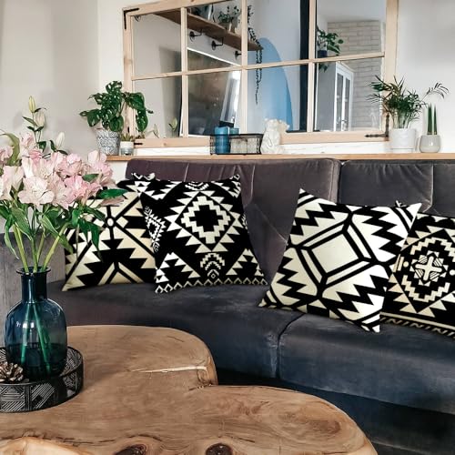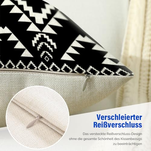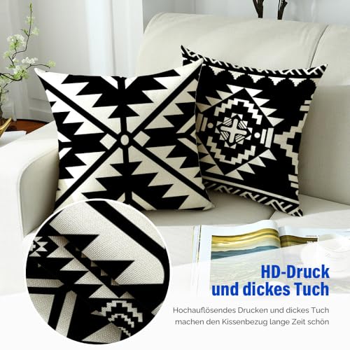 Cirzone Wasserdicht Kissenbezug 4er Set 45 x 45 cm Dekorative Outdoor Kissen Wasserfest Atmungsaktiv Schwarzes Geometrisches Muster Kissenbezug Gartendeko für Draußen Sofakissen Garten Outdoor…