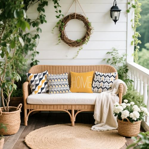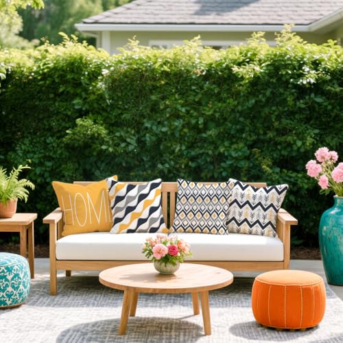 Cirzone wasserdichte Kissenbezug 4 Stück 45 x 45 cm Dekorative Outdoor Kissen Wasserfest Atmungsaktiv Geometrische Gelb-Blaue Wellenstreifen Kissenbezug Werden für Sofakissen Garten Outdoor