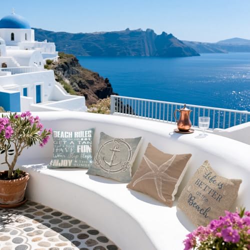 Cirzone wasserdichte Kissenbezug 4 Stück 45 x 45 cm Dekorative Outdoor Kissen Wasserfest Atmungsaktiv Mariner-Symbol Kissenbezug Werden für Sofakissen Garten Outdoor