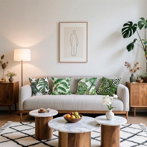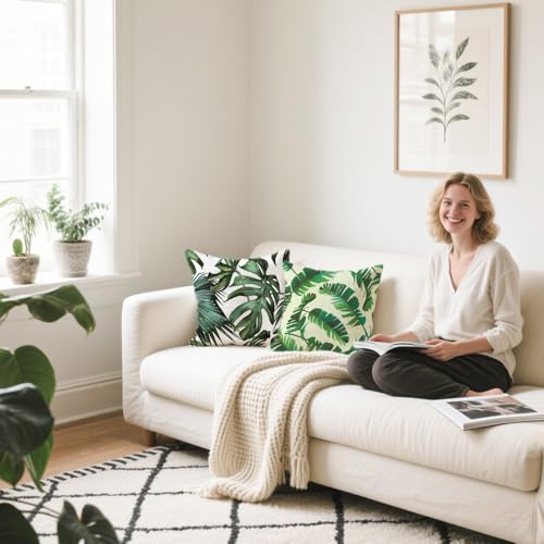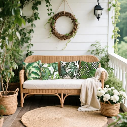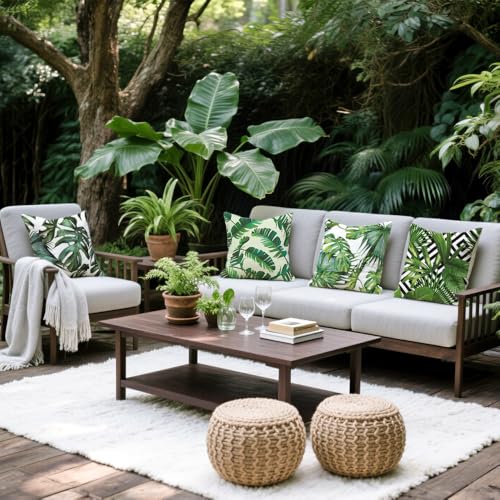 Cirzone wasserdichte Kissenbezugen 4 Stück 45 x 45 cm Dekorative Outdoor Kissen Wasserfest Atmungsaktiv Tropische Pflanzen Kissenbezugen Werden, Einfarbig für Sofakissen Garten Outdoor