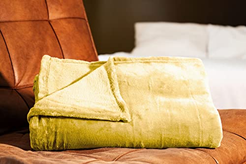 Clinotest XXL Kuscheldecke flauschig 150x220cm – Kochfest ohne Einlaufen oder Fusseln – warme Wohndecke in Gelb – auch als Sofadecke, Tagesdecke, Microthermaldecke, Fleecedecke nutzbar im Winter