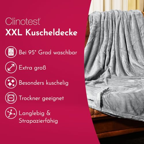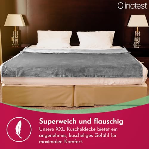 Clinotest XXL Kuscheldecke flauschig 150x220cm – Kochfest ohne Einlaufen oder Fusseln – warme Wohndecke in Grau – auch als Sofadecke, Tagesdecke, Microthermaldecke, Fleecedecke nutzbar im Winter
