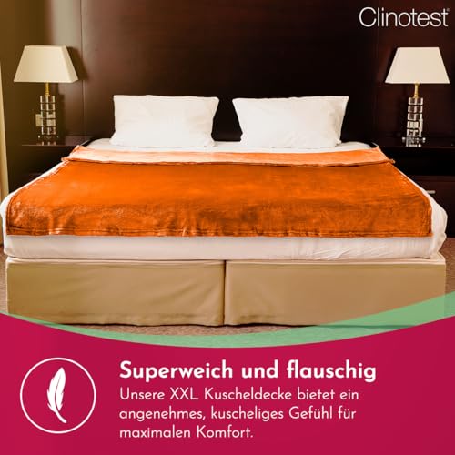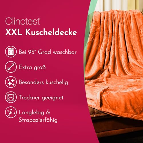 Clinotest XXL Kuscheldecke flauschig 150x220cm – kochfest ohne Einlaufen oder Fusseln – warme Wohndecke in Terracotta – auch als Sofadecke, Tagesdecke, Microthermaldecke, Fleecedecke nutzbar im Winter