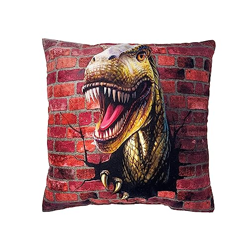 Close Up Dinosaurier Dekokissen T-REX 40 x 40 cm | Wendekissen rot braun schwarz | 100% Polyester