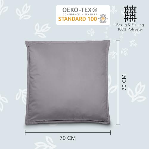 Como Dekokissen Bodenkissen 70 x 70 cm seidenmatt Anthrazit, 100% Polyester, Kissenbezug abnehmbar inkl. Kissen – Kopfkissen Sofakissen Zierkissen für Wohnzimmer Schlafzimmer