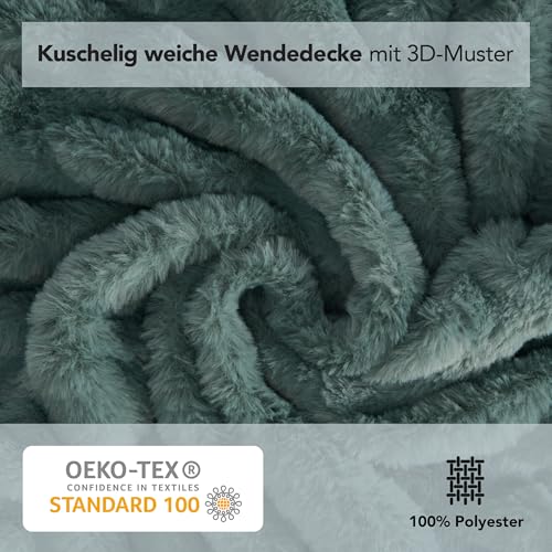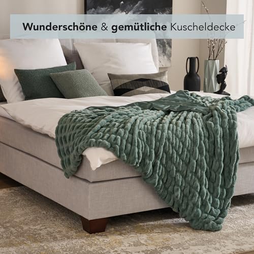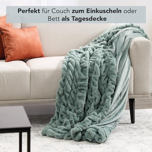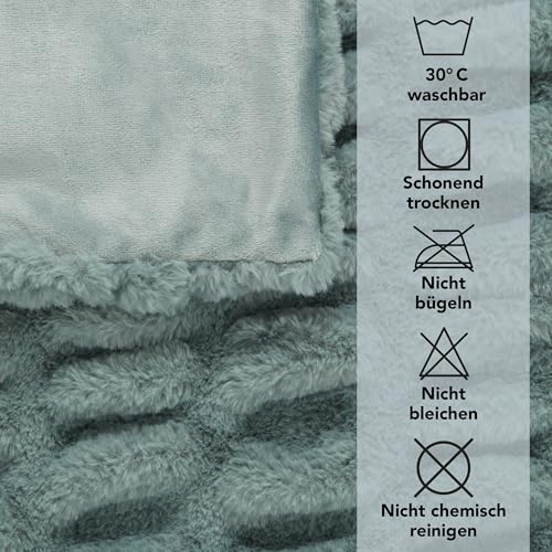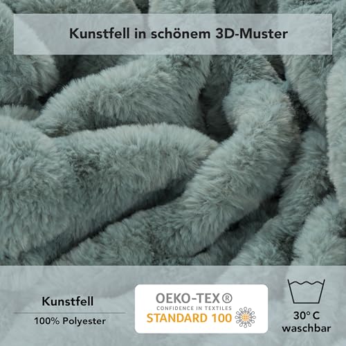 Como Kuscheldecke Grün modern, Wohndecke aus Kunstfell in 3D-Muster, 100% Polyester, 400 GSM, gesäumte Einfassung 150 x 200 cm