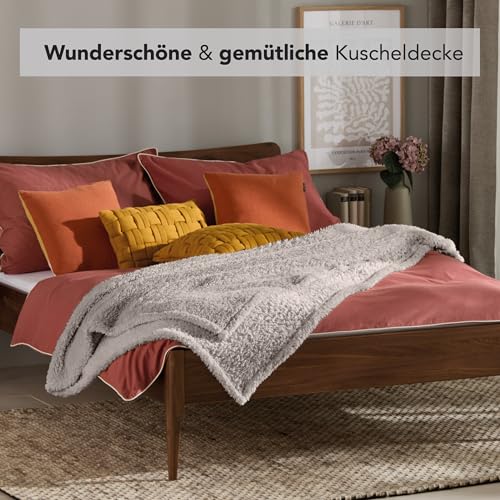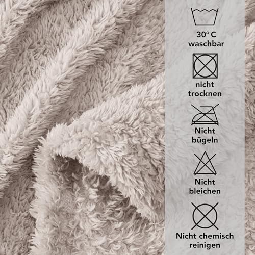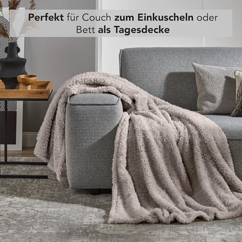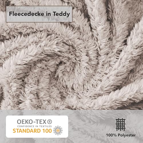 KUSCHELIG & WEICH | Die moderne TEddy-Fleecedecke ist überaus fein gestrickt. Optimal zum Einkuscheln nichtsdestotrotz alias überaus dekorative auf der Couch, Sessel oder Bett im Rahmen.