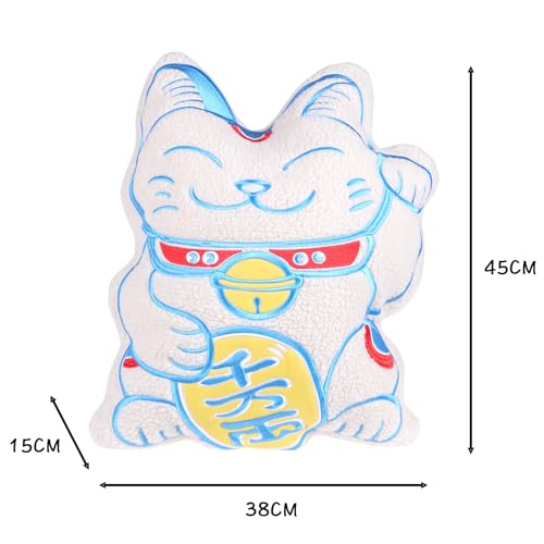 CoolChange Glückskatzen Kuschel Kissen | Maneki Neko Sofakissen | Winkekatze Dekokissen | 38x45cm