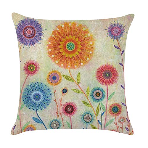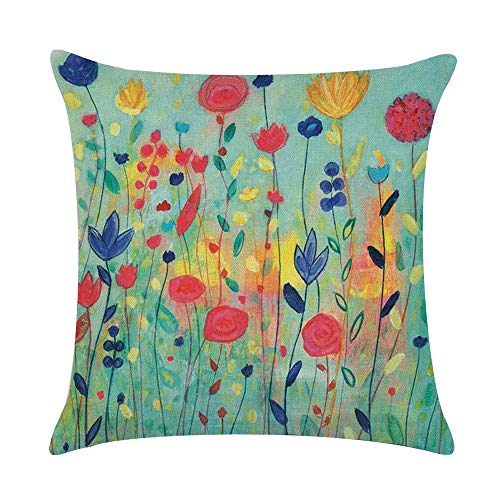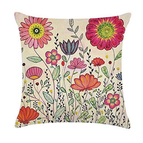 COWORK-UP 4er Set kissenbezüge 45x45cm Kissenbezug Bunte Blume Dekorative kissenhüllen für Schlafzimmer Wohnzimmer Büro Garten Sofa, Baumwolle Leinen Zierkissenbezug mit unsichtbarem Reißverschluß