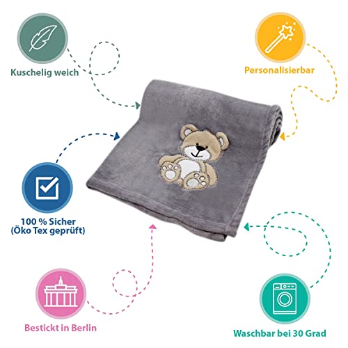PERSÖNLICHES GESCHENK – Die Babydecke in unmodern ist das perfekte Geschenk zur Babyparty, Ursprung oder Taufe. Das tolle Bärenmotiv bringt Kinderaugen zum Strahlen und ist zugleich ein schönes Dekoelement in jedem Kinderzimmer.