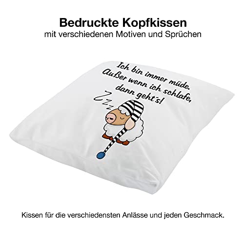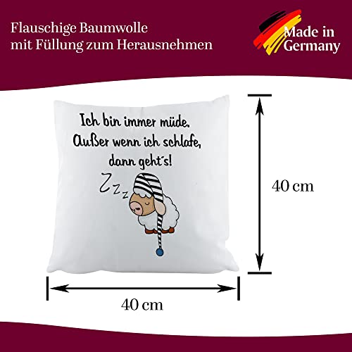 Crealuxe Ich Bin Immer müde – ausser wenn ich schlafe dann geht´s Zierkissen, Sofakissen, bedrucktes Kissen, Baumwollkissen