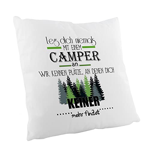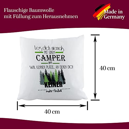 Crealuxe Leg Dich Niemals mit einem Camper an – wir kennen Plätze Zierkissen, Sofakissen, bedrucktes Kissen, Bauwollkissen