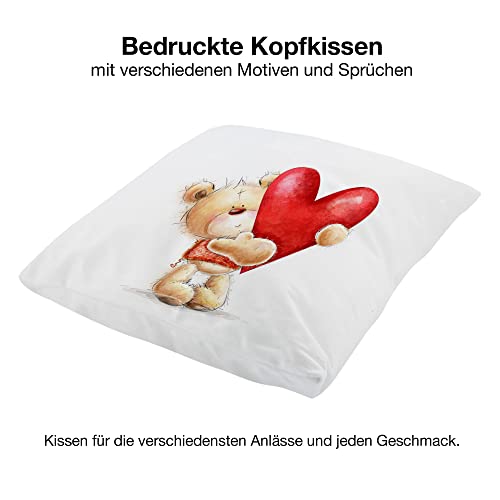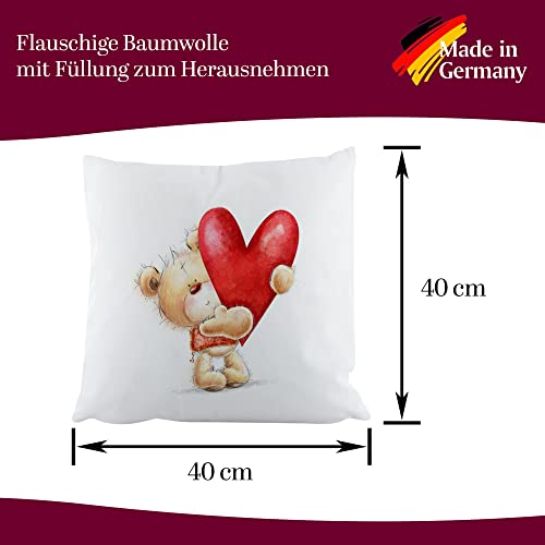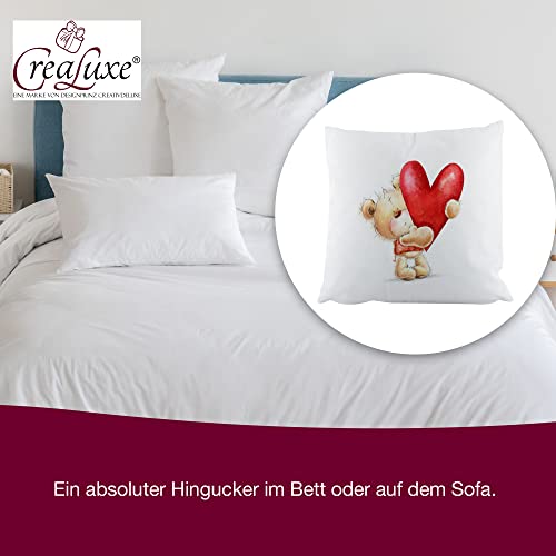 Crealuxe Motiv Herz mit Bärchen Zierkissen, Sofakissen, bedrucktes Kissen, Baumwollkissen