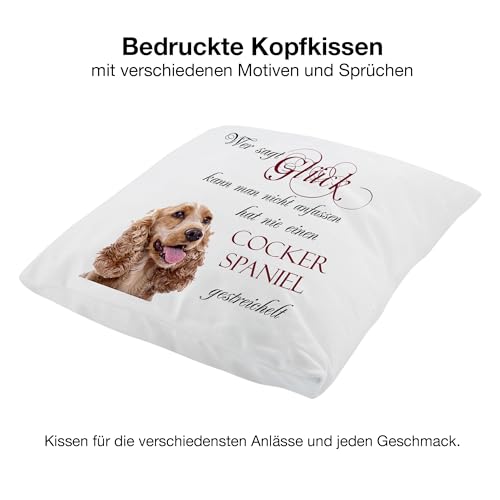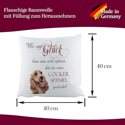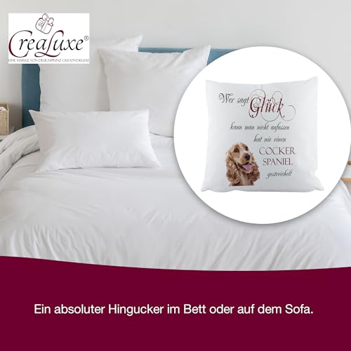 Crealuxe Wer SAGT Glück kann Man Nicht anfassen hat nie einen Cocker Spaniel gestreichelt Zierkissen, Sofakissen, bedrucktes Kissen, Bauwollkissen
