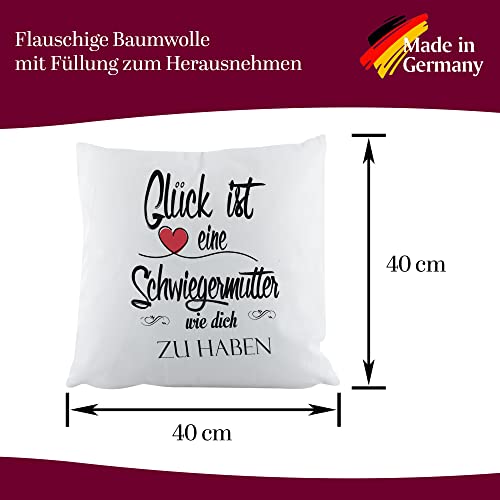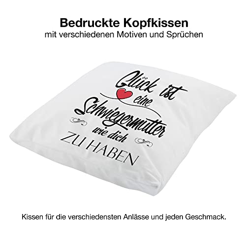 Crealuxe Zierkissen Bedruckt ‚Glück ist eine Schwiegermutter wie Dich zu haben‘, bedrucktes Kissen, Sofakissen, Baumwollkissenn