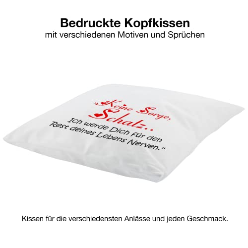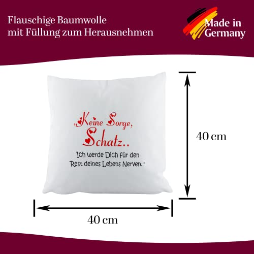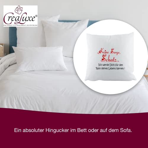 Crealuxe Zierkissen Bedruckt ‚Keine Sorge Schatz – ich werde Dich für den Rest deines Lebens Nerven‘, bedrucktes Kissen, Sofakissen, Baumwollkissen