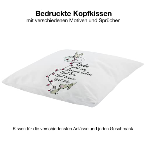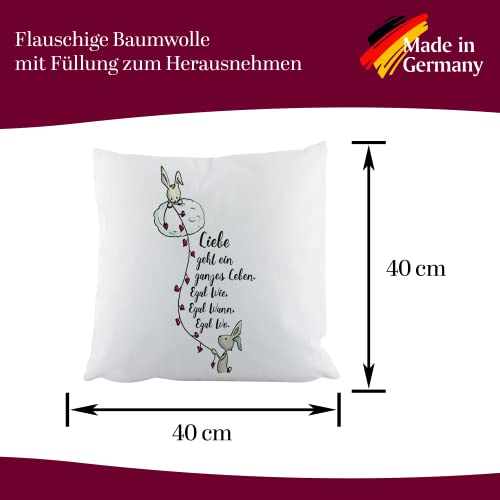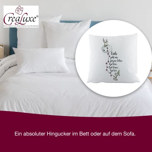Crealuxe Zierkissen Bedruckt ‚Liebe geht EIN ganzes Leben‘, bedrucktes Kissen, Sofakissen, Baumwollkissen