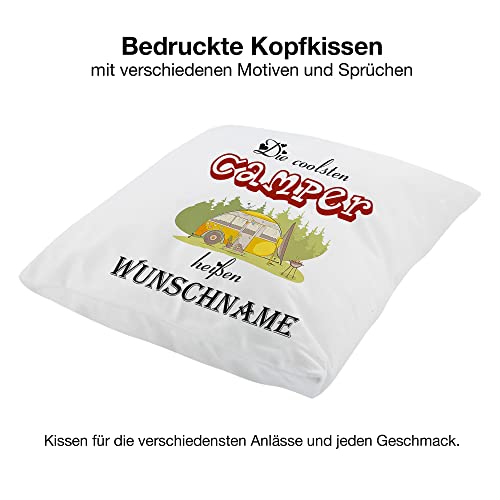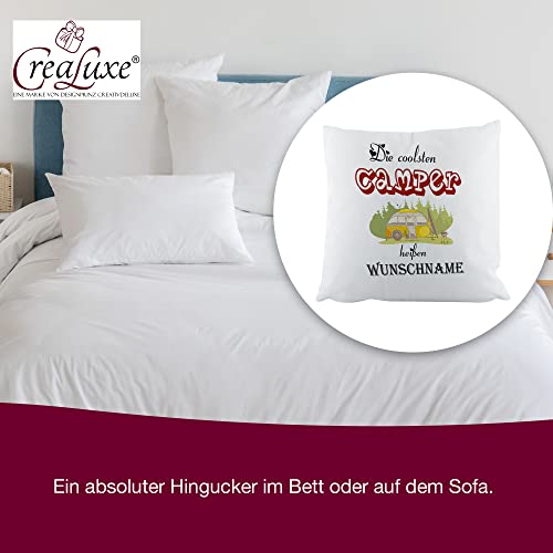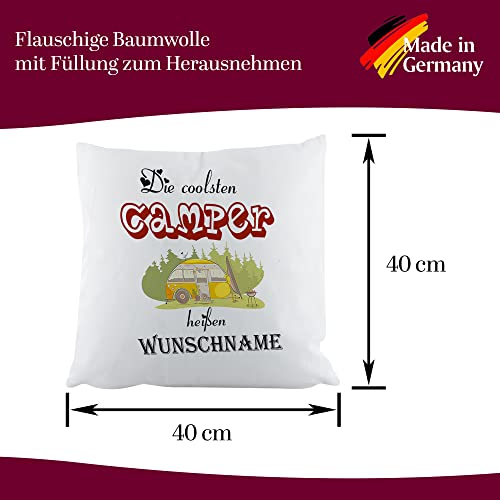 Crealuxe Zierkissen ‚Die coolsten Camper heißen Wunschname‘ personalisiert, Sofakissen, Baumwollkissen