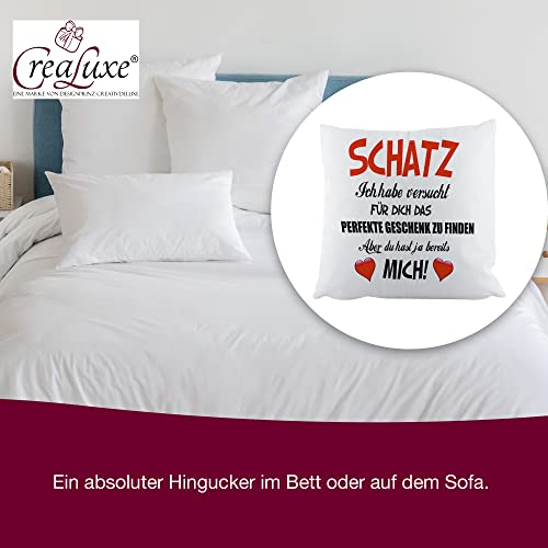 Crealuxe Zierkissen ‚ Schatz – ich Habe versucht für Dich ‚ Bedruckt, Sofakissen, Baumwollkissen, Geschenk für Valentinstag
