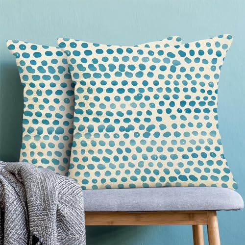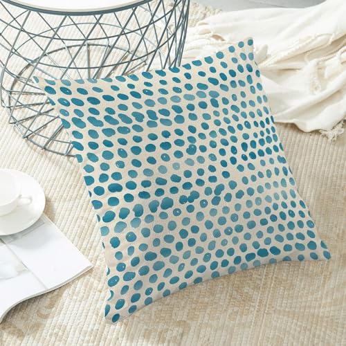 Der gepunktete Kissenbezug besteht aus hochwertigem Polyester-Leinenmaterial und ist sehr langlebig und weich. Dieser blaugrüne Kissenbezug hat einen unsichtbaren Reißverschluss, der das Aussehen verbessert und ein einfaches Einsetzen und Abschütteln ermöglicht.