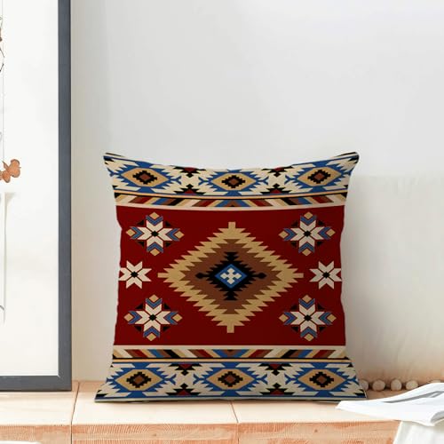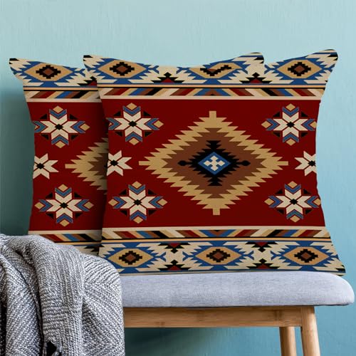 CXMEIFLY Dekorativer Kissenbezug im Boho-Azteken-Stil im Boho-Stil, 45,7 x 45,7 cm, 2 Stück, Motiv: westliche Indianer, geometrische Dekoration, Dekokissen für Couch, Bett, Dekoration