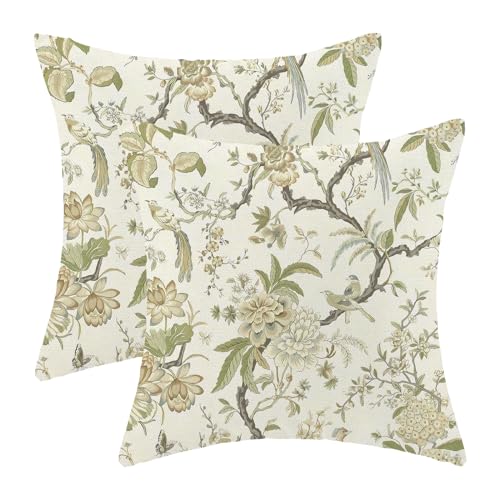 Frühlings-Kissenbezüge: Unsere Chinoiserie-Kissenbezüge mit Blumenmuster sind 50,8 x 50,8 cm aus hervorragendem atmungsaktivem Polyester-Baumwollgewebe. Die salbeigrünen, dekorativen Kissenbezüge mit Blumenmuster sind langlebig, weich und hautfreundlich. Die Pflanzen-Outdoor-Kissenbezüge verfügen über eine exquisite Einfassungstechnologie und vier Seiten unserer floralen Kissenbezüge sind fest vernäht, wodurch die Linie nicht leicht geöffnet werden kann.