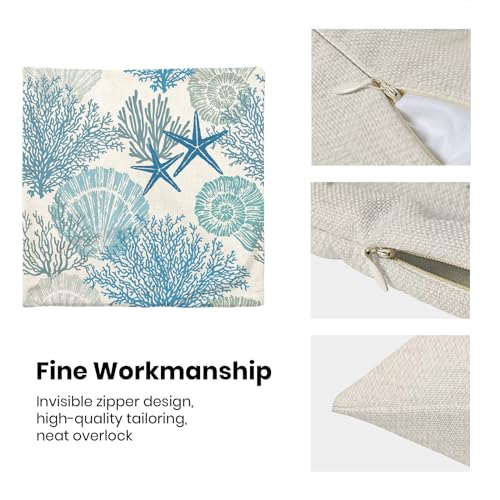 Küsten-Kissenbezüge: Unsere Muschel-Seestern-Kissenbezüge sind 40,6 x 40,6 cm aus hervorragendem atmungsaktivem Polyester-Leinen-Stoff. Die marineblauen Korallen-Kissenbezüge sind langlebig, weich und hautfreundlich. Die Outdoor-Kissenbezüge mit Strandmotiv verfügen über eine exquisite Einfassungstechnologie und vier Seiten unserer Ozean-Kissenbezüge sind fest vernäht, wodurch die Linie nicht leicht geöffnet werden kann.