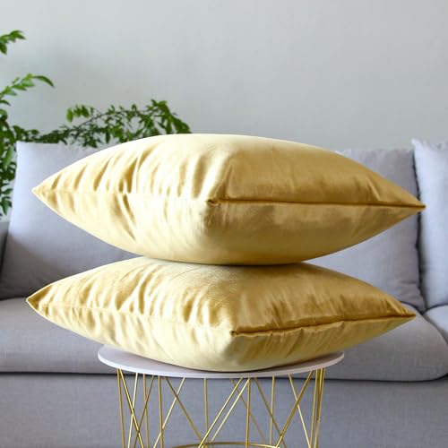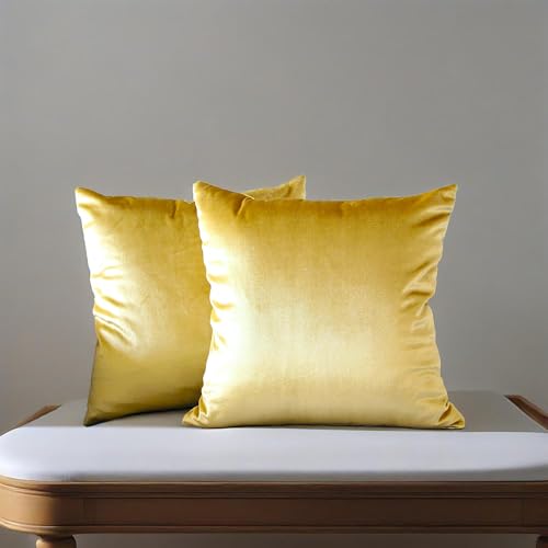 CXTAI Kissenbezug 45×45 cm (2er Set Samt) Kissenbezüge Sofakissen Dekokissen Kissenhülle Zierkissen – Gold