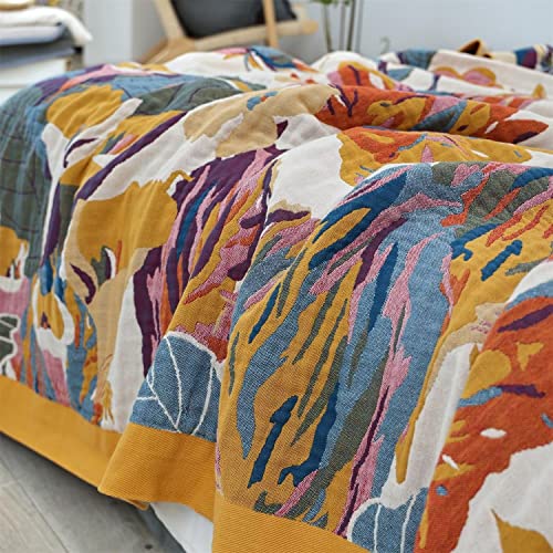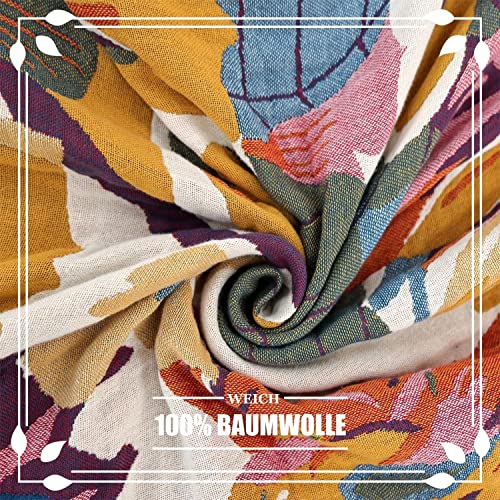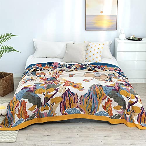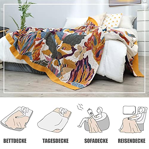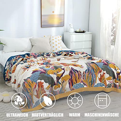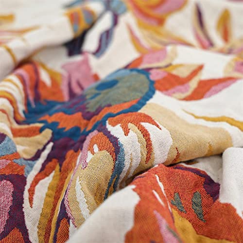 Deamos Boho Decke 100% Baumwolle Tagesdecke,Alle Saison Doppelseitig Gewebte Kuscheldecke 200×230 cm,Weich Blumen Muster Couchdecke Sofadecke Landhausstil Sesseldecke Wohndecke