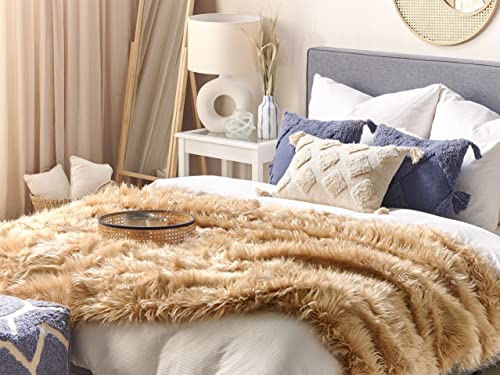 Einfarbige, hellbraune Tagesdecke in angenehm weicher Felloptik