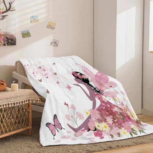 Decke Cartoon Mädchen Schmetterling Bunt, Warm Flauschig Flanell Kuscheldecke für Herbst und Winter, Weichen Bequem Drucken Decke als Sofadecke Schlafdecke Bettüberwurf 220 x 240 cm