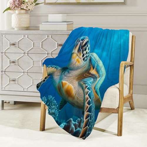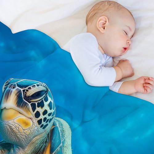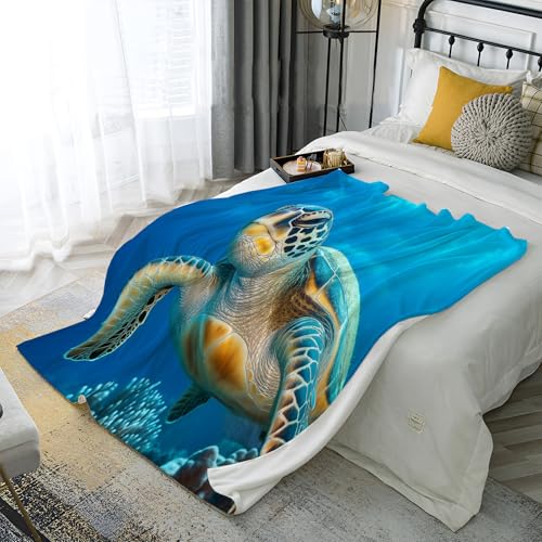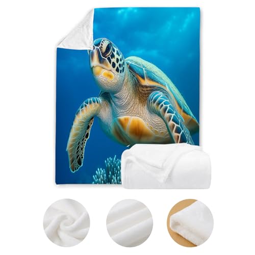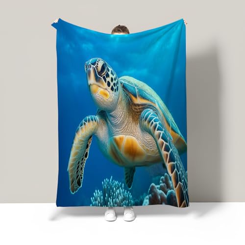 【Angenehm warm】: Wir haben unsere klassische Flanell-Fleecedecke verbessert, damit sie noch weicher gemütlich und hautsympathisch. jetzt mit verbesserter Mikrofaser. Fassung mit Barriereriff Schildkröten muster auf Oberseite, Rückseite in Weiß. Die exquisiten Farben verleihen dieser Decke ein eleganteres und eleganteres Aussehen und verleihen Ihrem Zimmer ein schickes Ambiente.