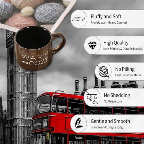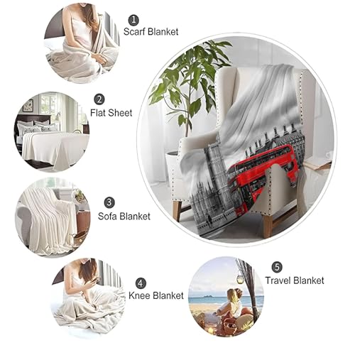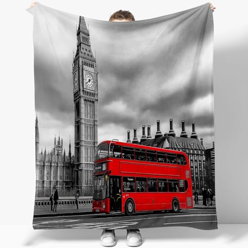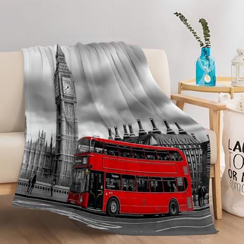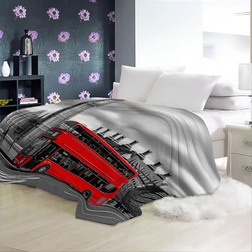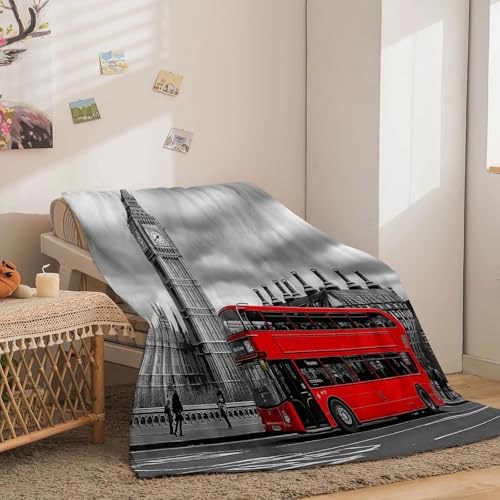 Decke Modern Stadt Bus Grau Rot, Warm Flauschig Flanell Kuscheldecke für Herbst Winter, Weichen Bequem Drucken Decke als Sofadecke Schlafdecke Bettüberwurf 220 x 240 cm