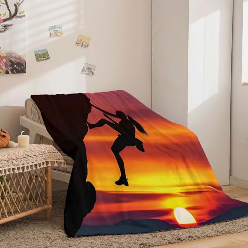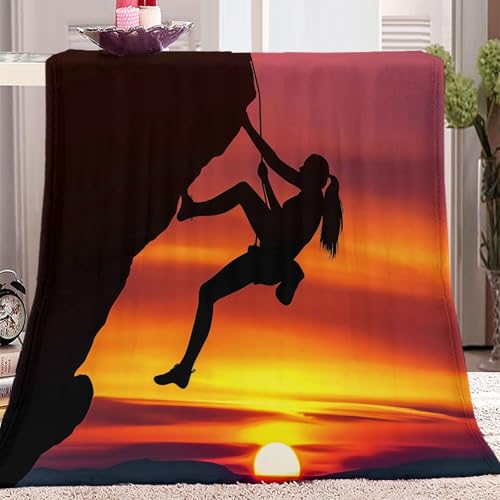 Decke Sport Klettern Orange Schwarz, Warm Flauschig Flanell Kuscheldecke für Herbst und Winter, Weichen Bequem Drucken Decke als Sofadecke Schlafdecke Bettüberwurf 220 x 240 cm