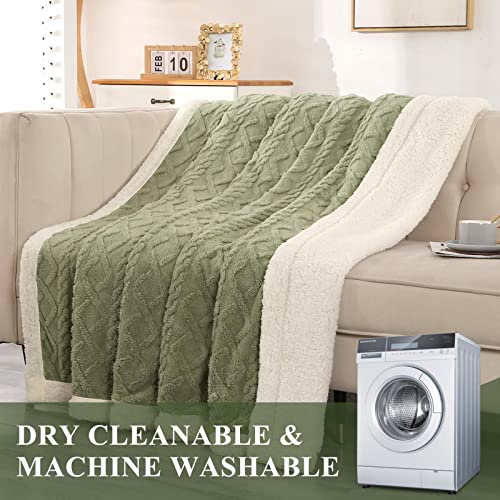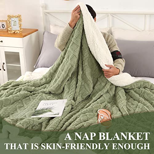 DECMAY Sherpa Fleece Throw Blanket 150x200cm, Fluffy Soft Warm Throws for Sofa Large Fleece Thick Blanket for Bed, Couch, Sofa and Chair, Sage Green