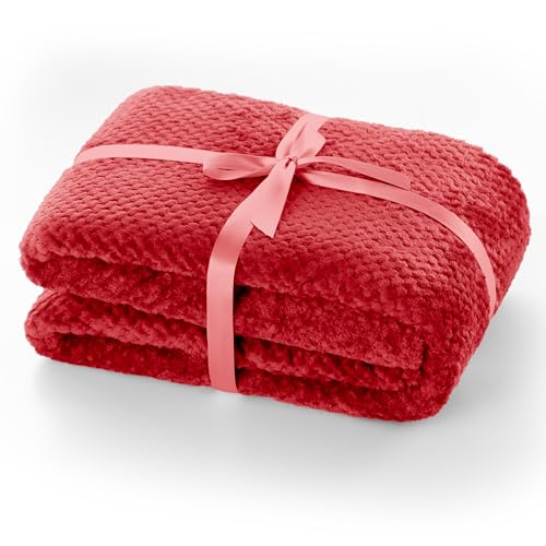 DecoKing Kuscheldecke 70×150 cm rot Decke Microfaser Wohndecke Tagesdecke Fleece weich sanft kuschelig skandinavischer Stil Henry